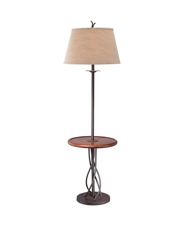 Franklin Iron Works Rustic Floor Lamp with Table 63.5" Tall Wood Twisted Iron Base Linen Empire Shade for Living Room Reading Bedroom