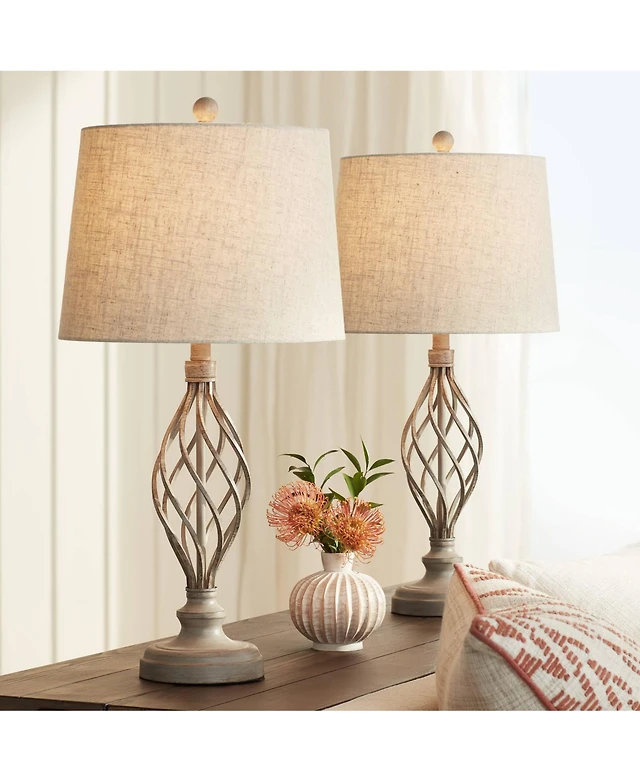 Franklin Iron Works Annie Modern Coastal Table Lamps 28" Tall Set of 2 Weathered Sand Iron Cream Tapered Drum Shade for Bedroom Living Room Bedsi