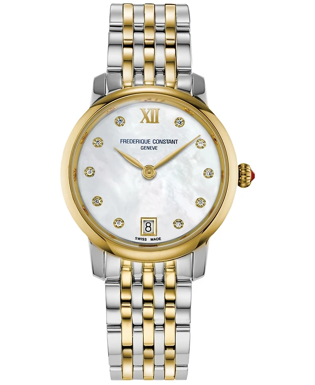 Frederique Constant Women's Swiss Slimline Diamond (1/20 ct. t.w.) Two-Tone Stainless Steel Bracelet Watch 30mm