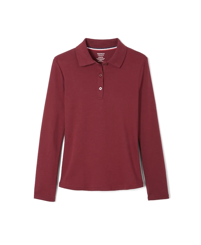 French Toast Big Girls Long Sleeve Stretch Pique Polo Shirt