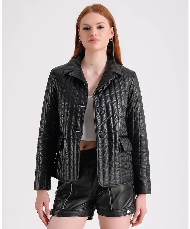 Furniq Uk Women's Cropped Leather Jacket With Gold Buttons, Created for Macy s