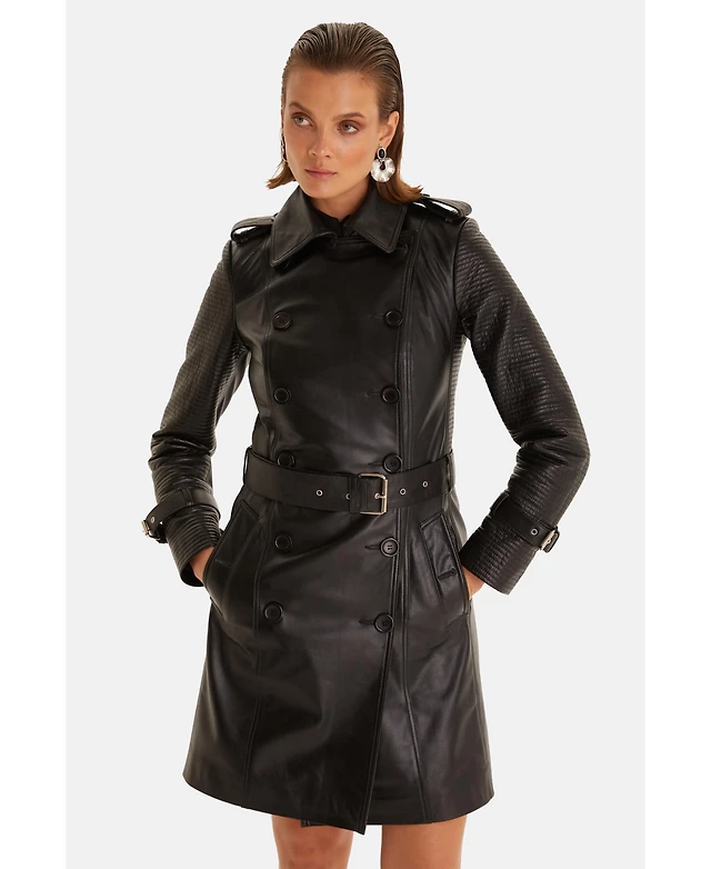 Furniq Uk Women's Leather Trench Coat, Created for Macy's
