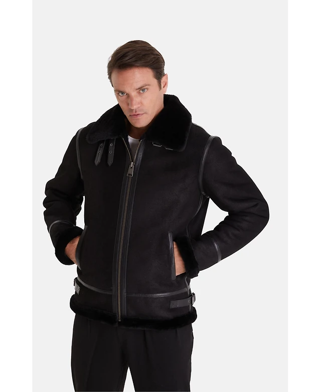 Furniq Uk Men's Leather Shearling Jacket, Black