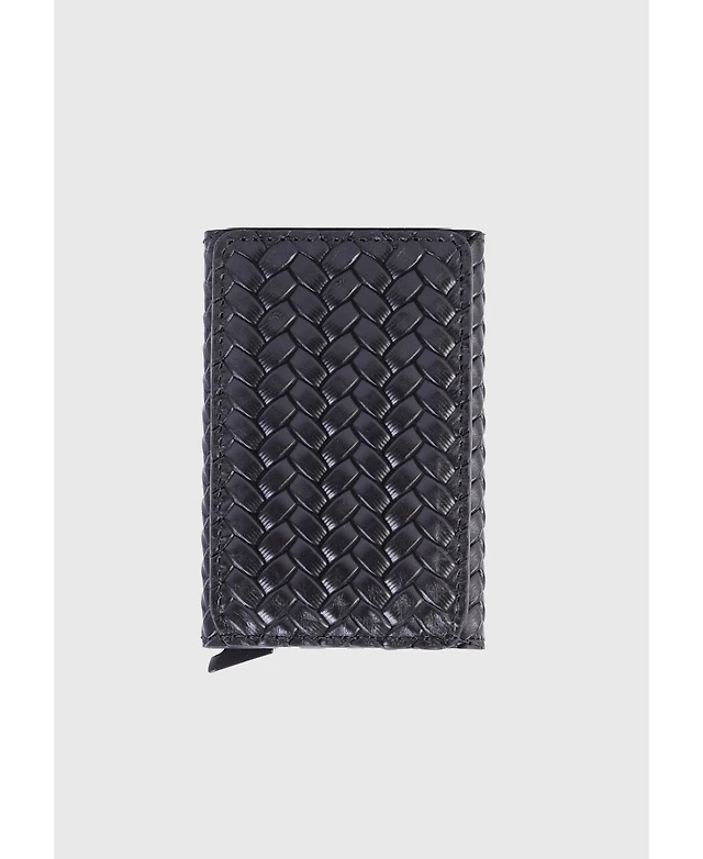 Furniq Uk Men's Genuine Leather Weave Pattern Card Holder