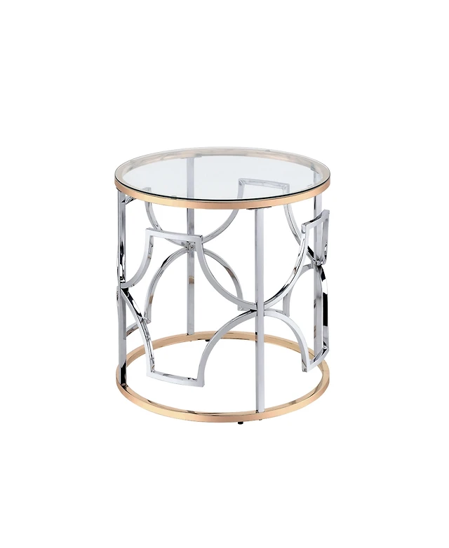 Furniture of America 23" Metal, Glass Camille Modern Round Glass Top End Table