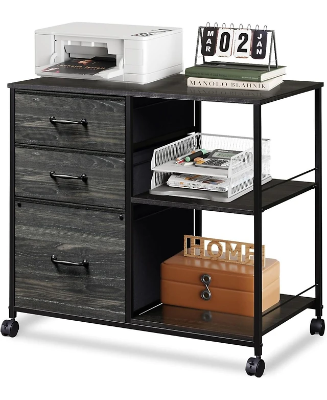 Mobile File Cabinet, Rolling Printer Stand with 3 Drawers, Fabric Vertical Filing Cabinet fits A4 or Letter Size for Home Office