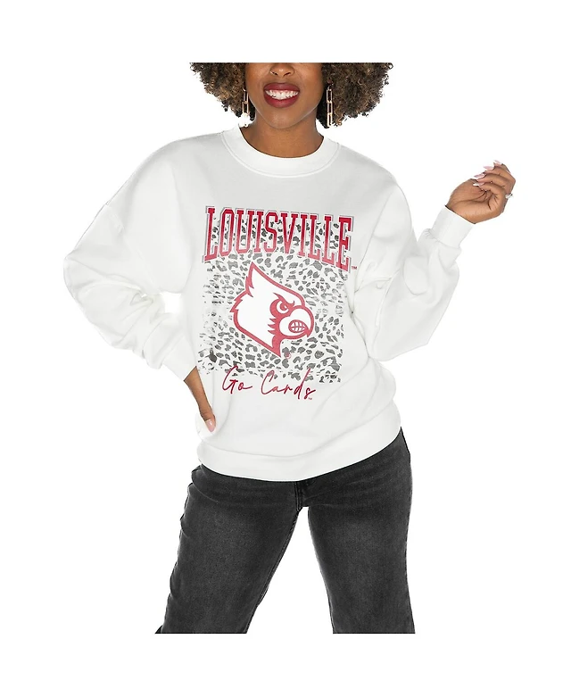 Gameday Couture Women's White Louisville Cardinals Drop Shoulder Fleece Pullover Sweatshirt