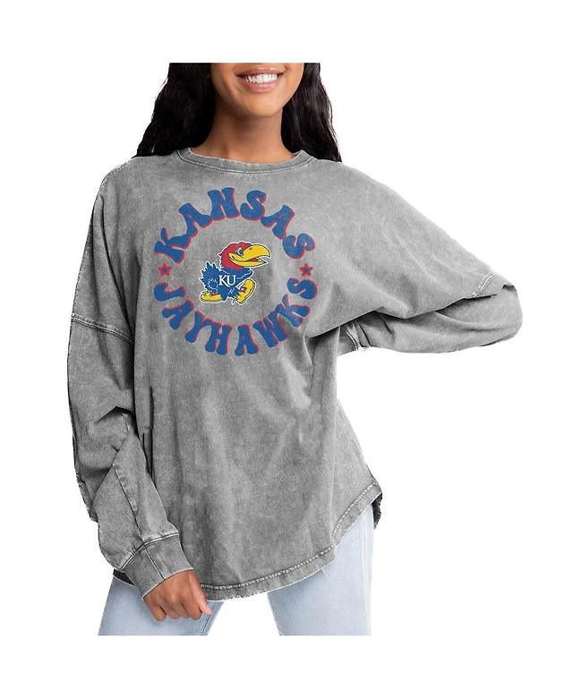 Gameday Couture Women's Gray Kansas Jayhawks Playing Around Faded Wash Oversized Long Sleeve T-Shirt