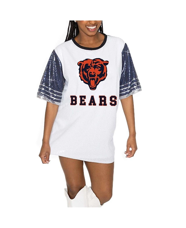 Gameday Couture Women's White/Navy Chicago Bears Bling It Full Sequin Jersey Dress