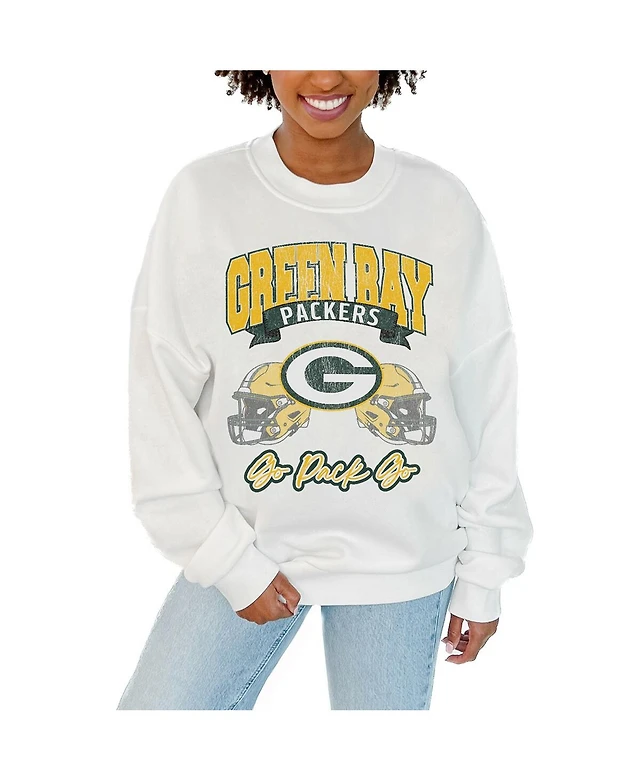 Gameday Couture Women's White Green Bay Packers Passing Time Pullover Sweatshirt