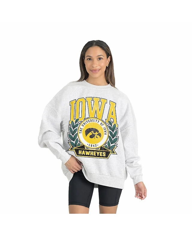 Gameday Couture Women's Gray Iowa Hawkeyes Premium Fleece Drop Shoulder Oversized Pullover Sweatshirt