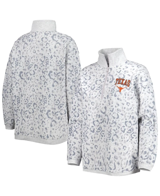 Women's Gameday Couture Heather Gray Texas Longhorns Leopard Quarter-Zip Sweatshirt
