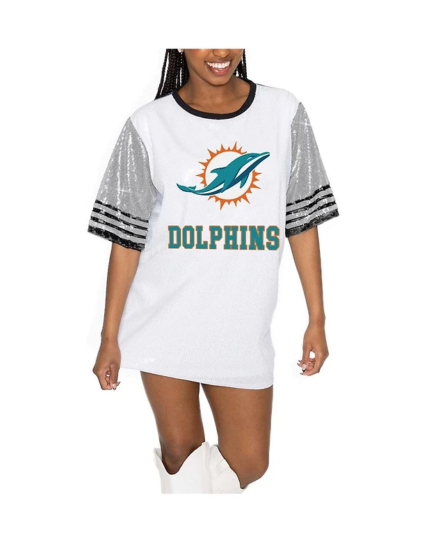 Gameday Couture Women's White/Gray Miami Dolphins Bling It Full Sequin Jersey Dress