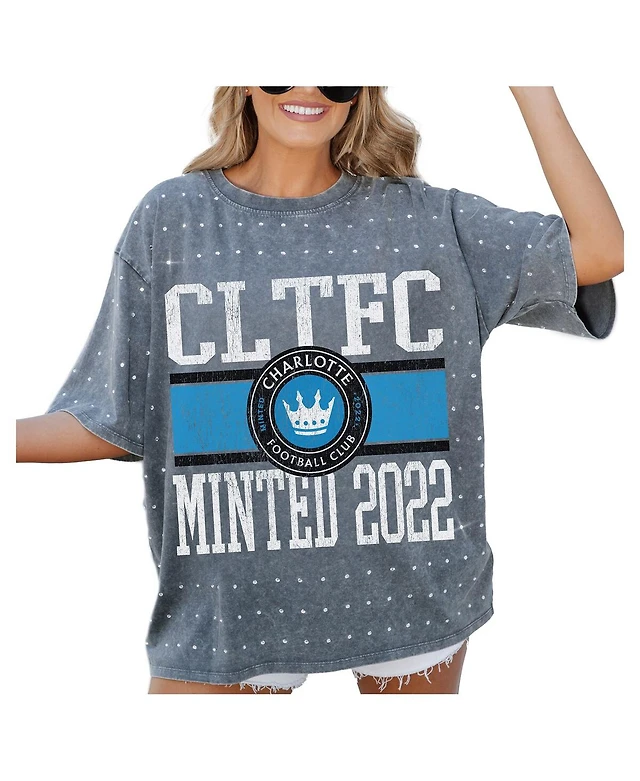 Gameday Couture Women's Gray Charlotte Fc Oversized Mini Rhinestone Classic T-Shirt