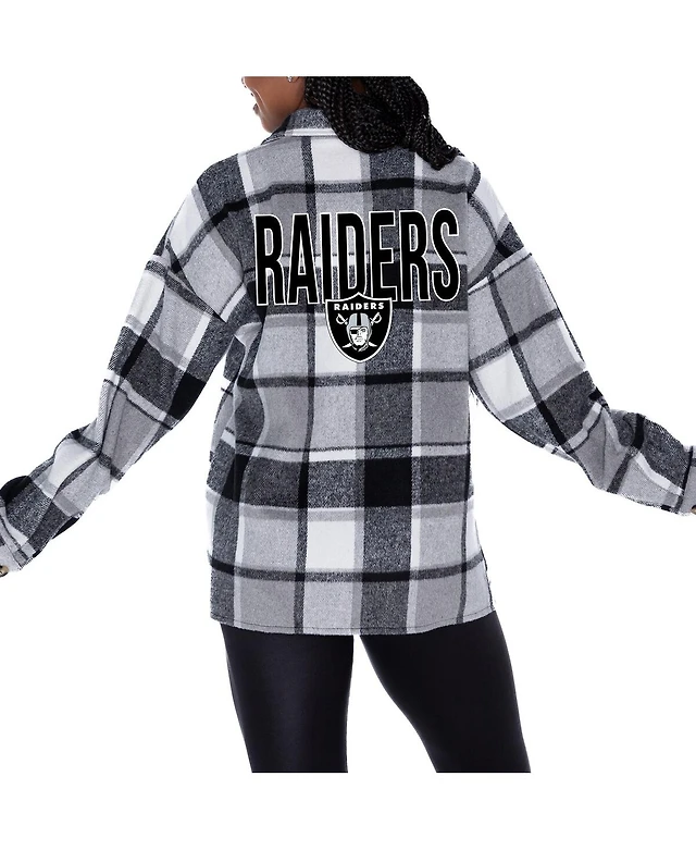 Gameday Couture Women's Gray Las Vegas Raiders Fieldside Fun Plaid Button-Up Overshirt