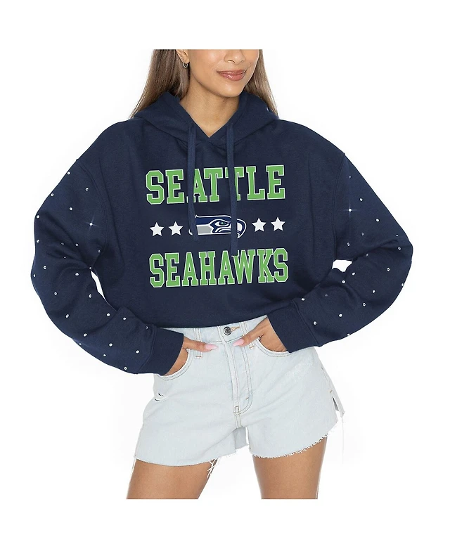 Gameday Couture Women's College Navy Seattle Seahawks Like A Star Scrunch Waist Pullover Rhinestone Hoodie