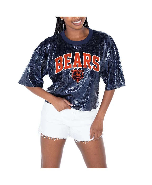 Gameday Couture Women's Navy Chicago Bears Rise Up Sequin Cropped T-Shirt