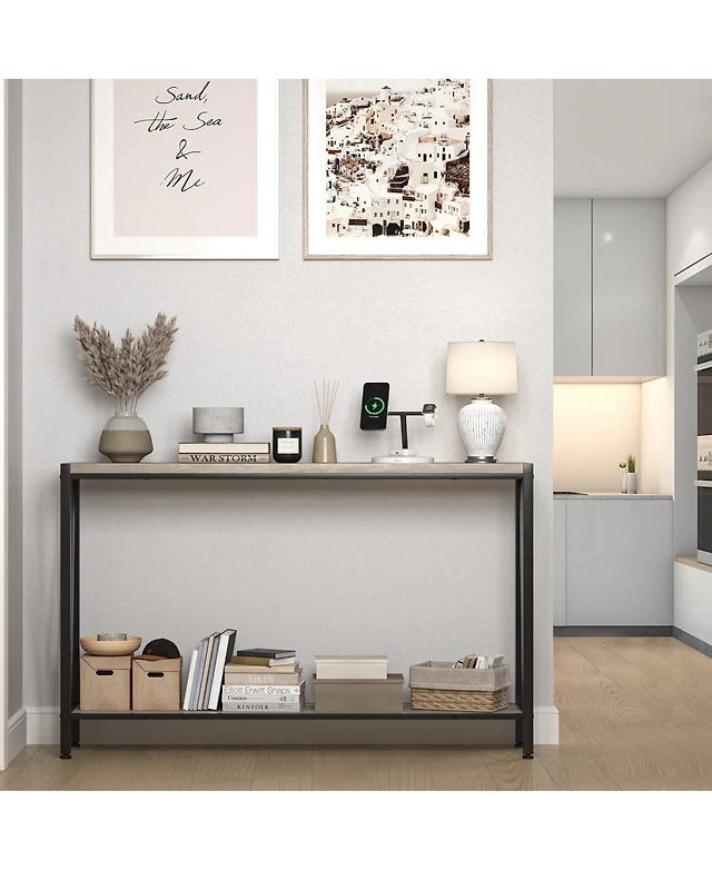 gaomon Side Table Entryway 2-Tier Console with Storage Narrow Sofa V Design 43" Industrial for Hallway L