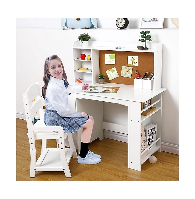 gaomon Wooden Study Desk and Chair Set for Kids,White Learning Table