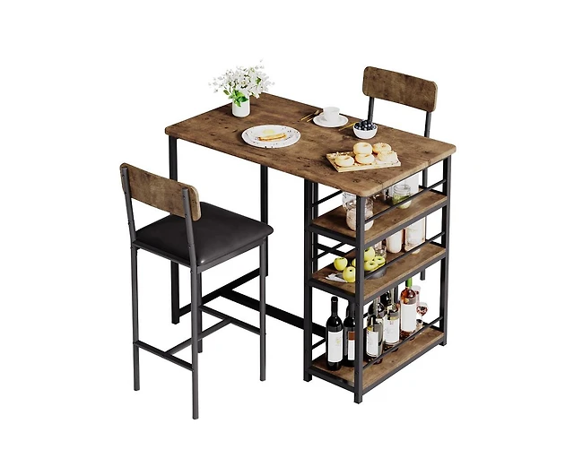 gaomon Small Bar Table and Chairs Set for 2, 3-Piece Bar Table Set with 3 Tier Storage Shelves, Space Saving Table for Small Apartment, Living Room,Ki
