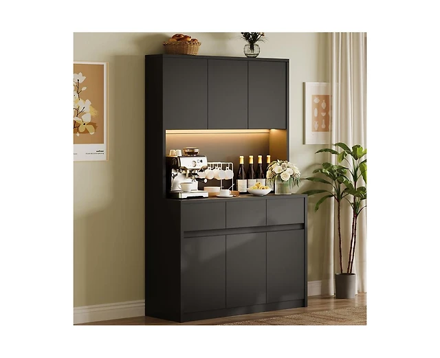 gaomon 71" Tall Kitchen Pantry Storage Cabinet, Kitchen Hutch Storage Cabinet with Led Lights, Freestanding Pantry Cabinet with Microwave Shelf