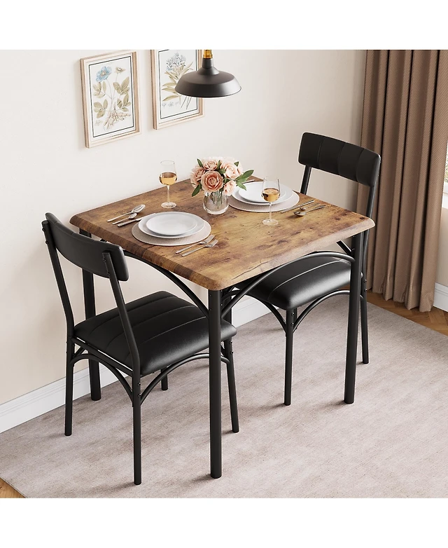 gaomon Dining Table Set, Kitchen Table and Chairs for 2, with 2 Upholstered Chairs, 3 Piece Dining Table Set,Brown