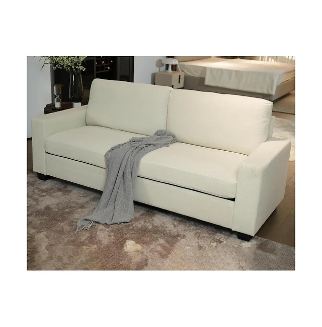 gaomon 3 Seater Sofa with Tufted Back, Grain Leather Couch with Feather, Vintage Faux Leather