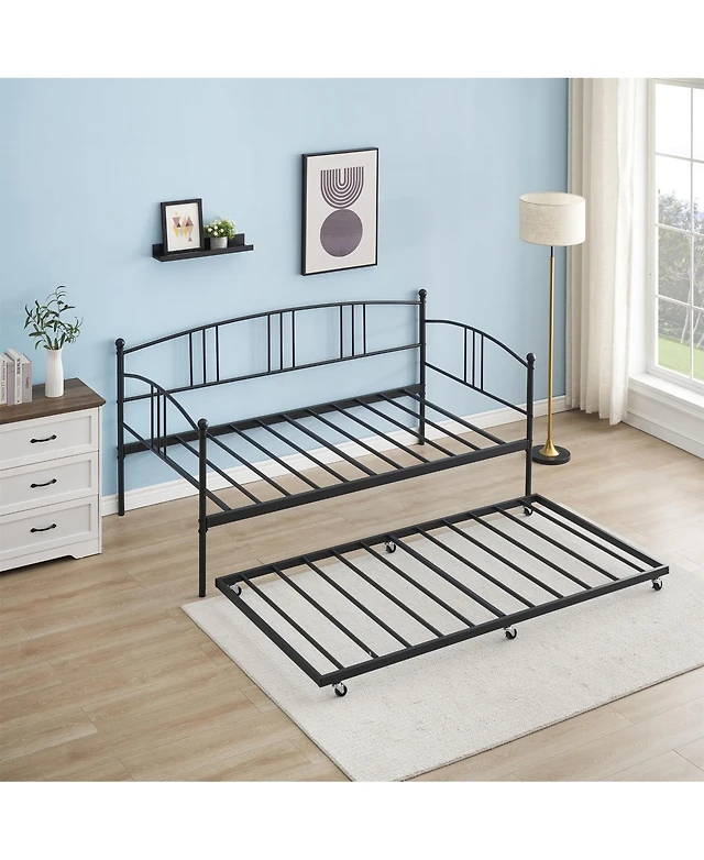 gaomon Twin Daybed with Trundle Metal Guest Sofa Bed Frame , Heavy Duty Slats