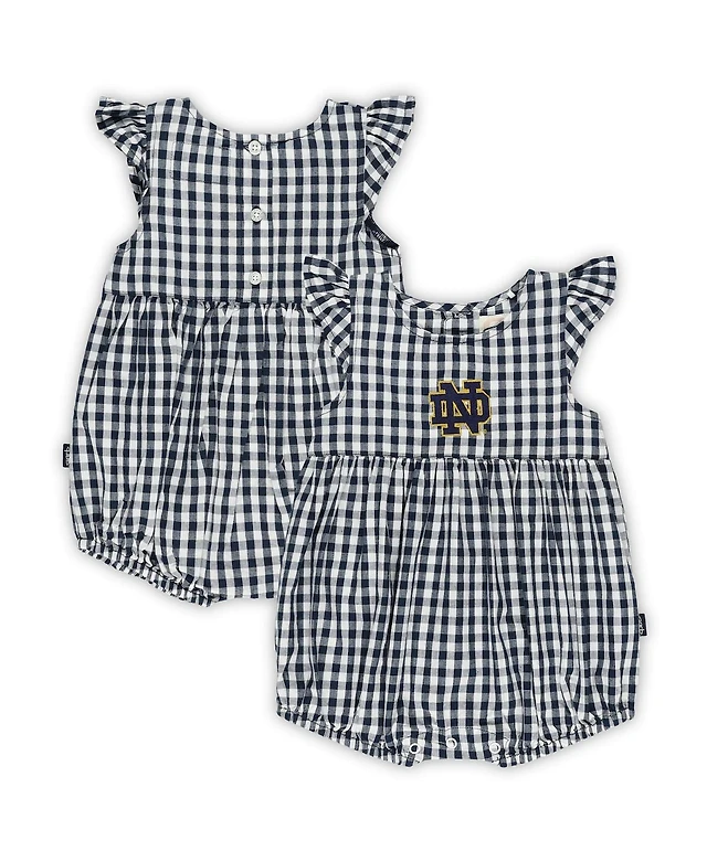 Garb Girl's Baby Boys and Girls Navy Notre Dame Fighting Irish Cara Gingham Ruffled Bodysuit