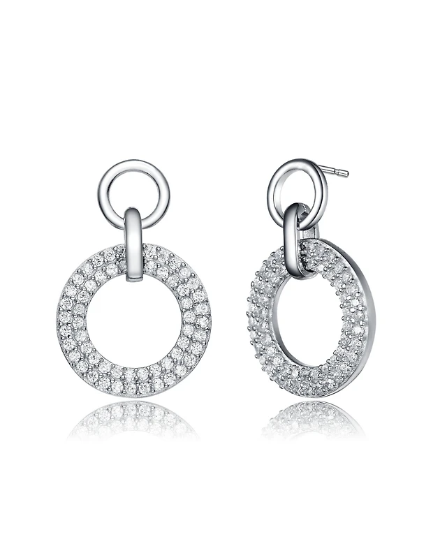 Sterling Silver White gold Plated Pear Drop Cubic Zirconia with Circle Post Earrings