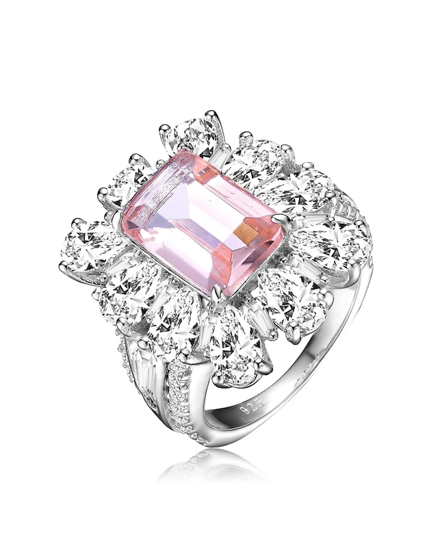 Sterling Silver Rhodium Plated with Blue Cubic Zirconia Statement Ring