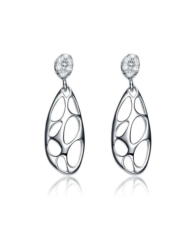 Sterling Silver Cubic Zirconia Oval Drop Lace Design Earrings
