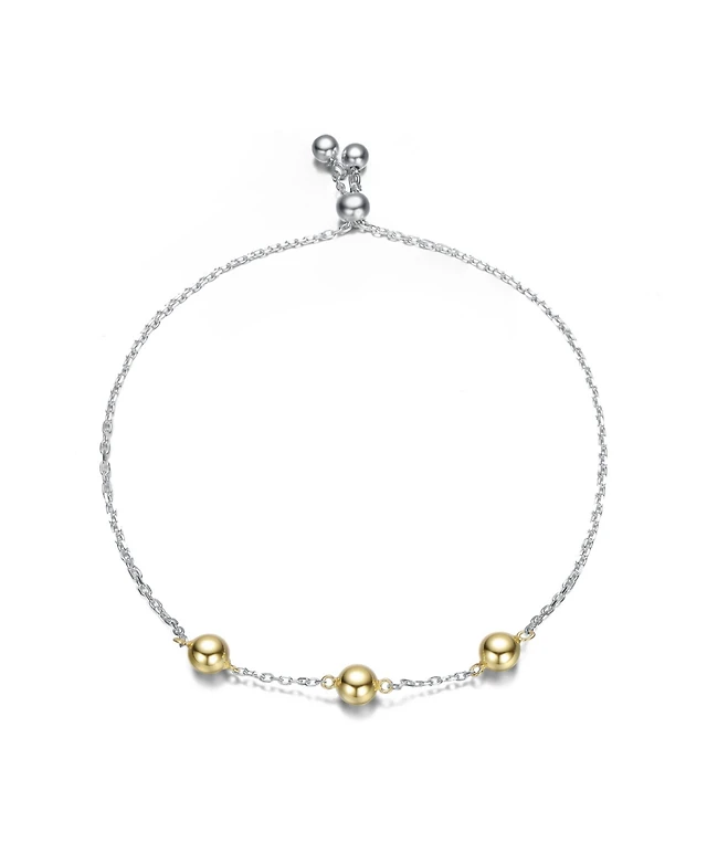 Sterling Silver Two-Tone with 14K Gold Plated Spheres and White Gold Plated Chain Adjustable Bracelet