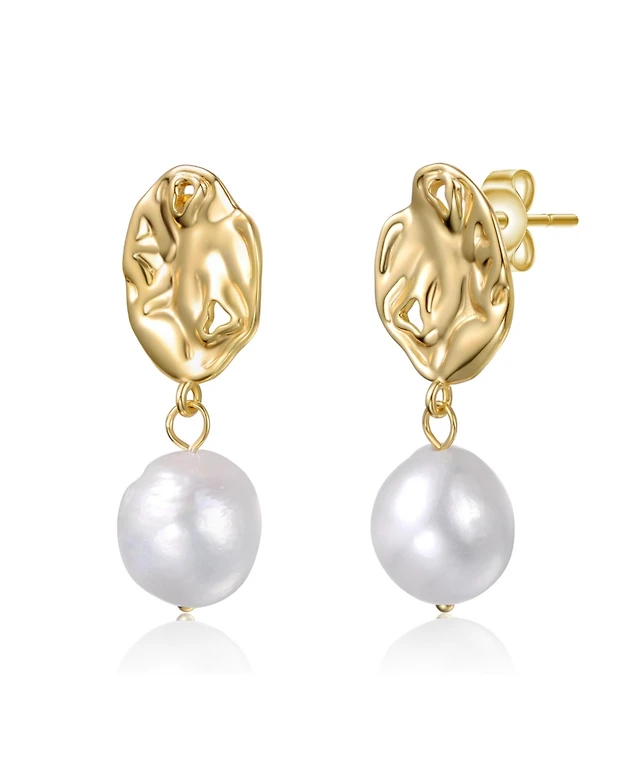Sterling Silver 14K Gold Plated with Irregular Freshwater Pearl Dangle Earrings