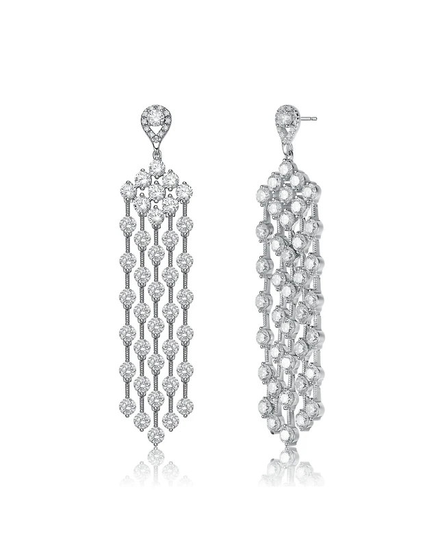 Sterling Silver White Gold Plated with Clear Graduated Cubic Zirconia Y-Necklace
