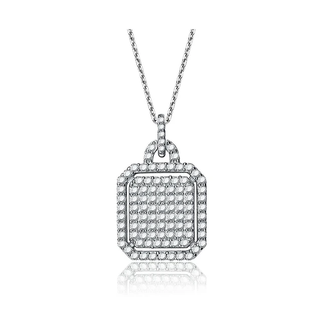 Sterling Silver White Gold Plated Cubic Zirconia Square shaped Necklace