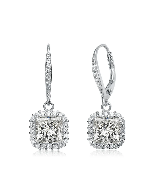 Sterling Silver Cubic Zirconia Square Cushion Drop Earrings