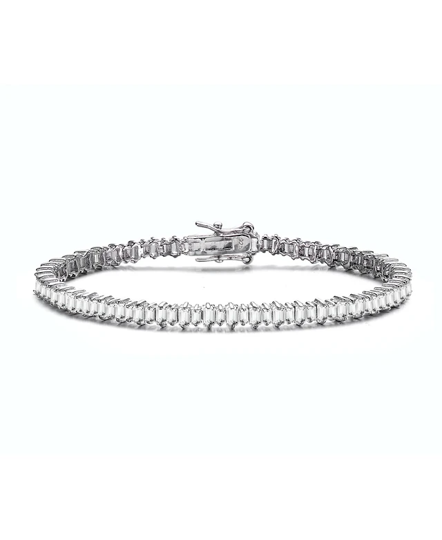 Sterling Silver with Rhodium Plated Clear Cubic Zirconia Tennis Bracelet