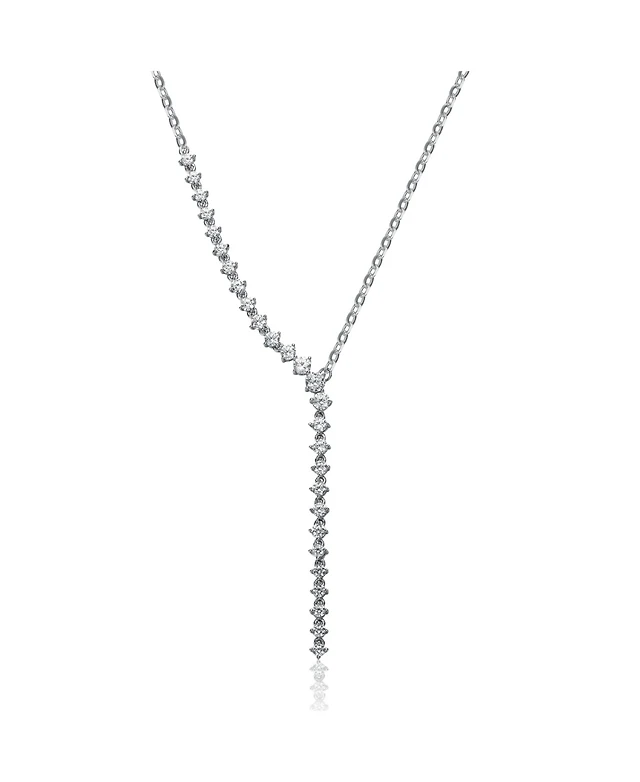 Rhodium-Plated with Cubic ZIrconia Asymmetrical Waterfall Y-Necklace Sterling Silver
