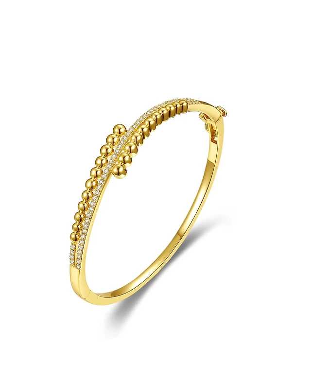 Sterling Silver with 14K Yellow Gold-Plated Cubic Zirconia Pave Bypass Bangle Bracelet