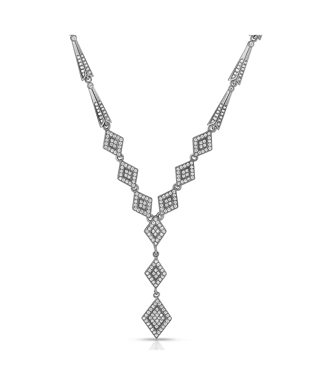 Genevive Sterling Silver Cubic Zirconia Cluster Station Necklace