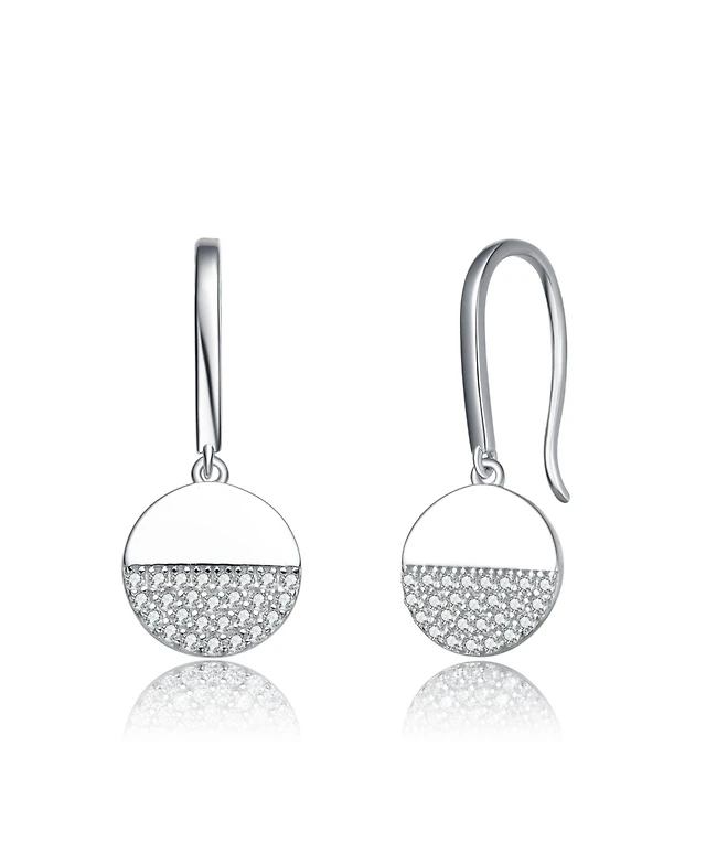 Sterling Silver White Gold Plated with Clear Cubic Zirconia Dangling Earrings