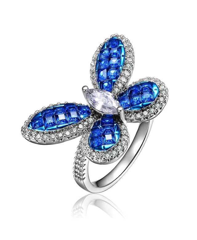 Sterling Silver 18K Rose Plated Cubic Zirconia Butterfly Floral Ring