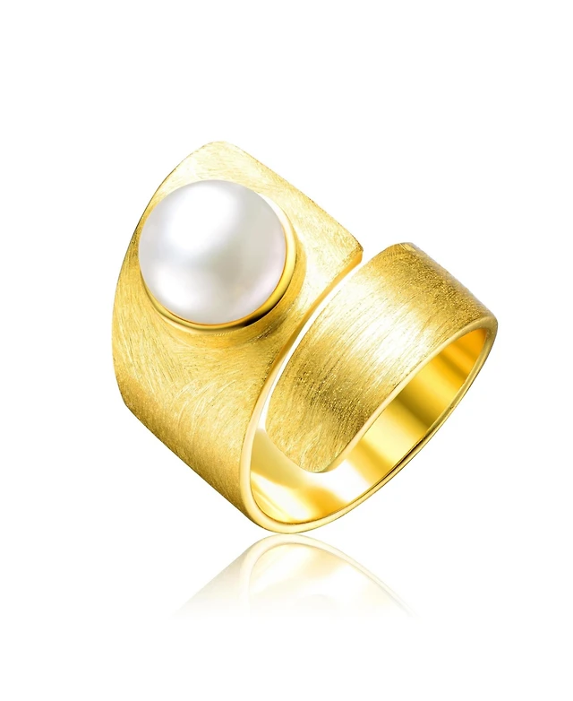 Genevive Sterling Silver 14K Gold Plated with Genuine Freshwater Pearl Curvy Pendant Necklace