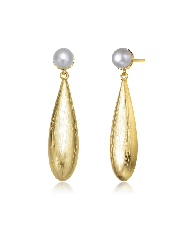 Sterling Silver 14K Gold Plated with Freshwater Pearl Dangle Earrings