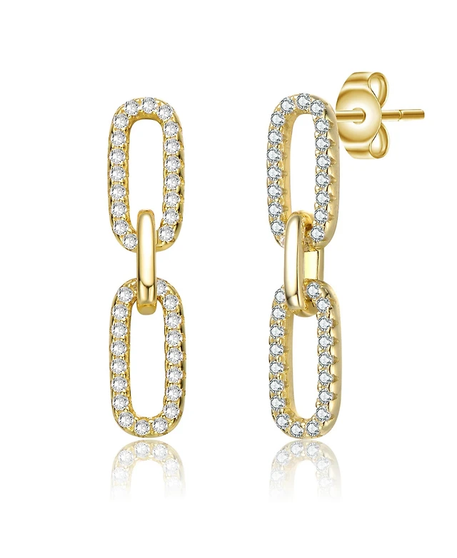 Sterling Silver 14K Gold Plated with Clear Cubic Zirconia Drop Earrings