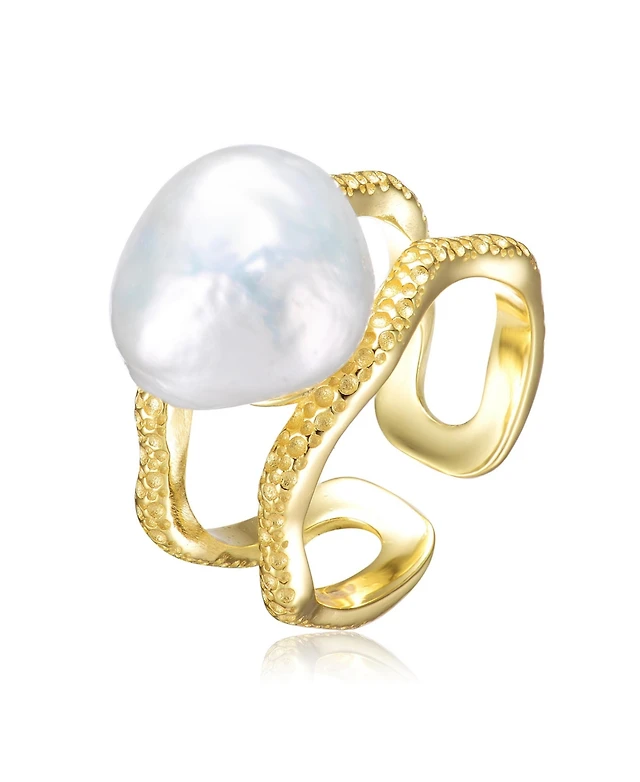 Genevive Sterling Silver 14K Gold Plated Triple Sphere Ring with Interlocking Bands