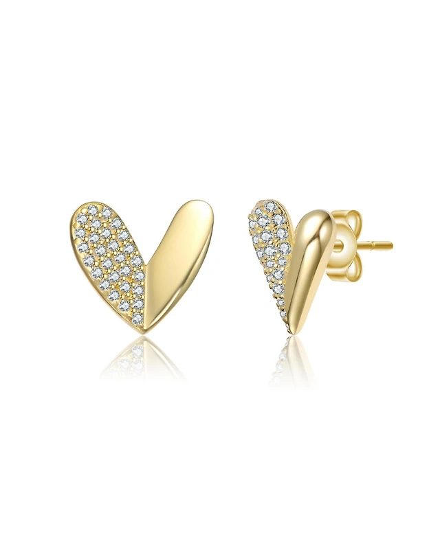 Genevive Sterling Silver Two-Tone Heart Design Stud Earrings