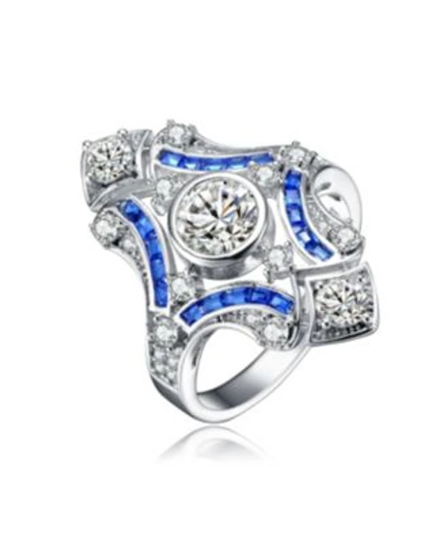 Sterling Silver Rhodium Plated with Blue Cubic Zirconia Statement Ring