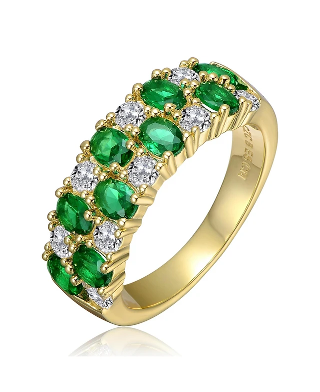 Genevive Sterling Silver 14K Gold Plated with Green & Clear Cubic Zirconia Band Ring